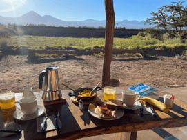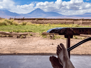 Um 5 Uhr ratterte unser Jeep los Richtung bolivianische Grenze welche wir um 8 Uhr erreichten. Diesmal gieng der Grenzübertritt etwas harziger, die Mühlen scheinen nicht immer gleich schnell zu malen. Aber schlussendlich erreichten wir um 11 Uhr San Pedro und konnten auch gleich in unsere Unterkunft einchecken. Mit dem Gepäcktransfer über die staubigen Holperstrassen wurden die Rädli der Rollkoffer ziemlich steapaziert aber nun sollte der rumplige Teil des Tages abgeschlossen sein und wir geniessen einen entspannten Nachmittag auf der Hotelterrasse wo wir mit Blick auf den Licancabur-Vulkan und dem Sichten der Fotos nochmals diesen herrlichen Ausflug Revue passieren lassen. Nach einem herrlichen Nachtessen inkl. Panflötenkonzert spazieren wir zum Hotel zurück und sind fasziniert vom Sternenhimmel wo wir schon von blossem Auge die Wolken der Milchstrasse ausmachen können. Wir freuen uns schon auf einen nächtlichen Ausflug in die Wüste. Für heute holen wir aber früh den fehlenden Schlaf nach.
