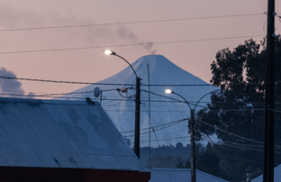 Es ist wieder mal Reisetag. Wir brechen um 6.30 Uhr auf um zum Flughafen Temuco zu fahren und genug Zeit zu haben, uns nochmals mit Nadine und Silvan zu treffen. Endlich kann ich auch den rauchenden Vulkan Villarica nochmals sehen, in schönsten Morgenlicht, danke! Wir früchstücken gemeinsam mit Nadine und Silvan und verabschieden uns dann für sie letzten paar Wochen bis die beiden nach Hause kommen.